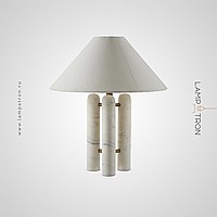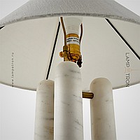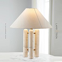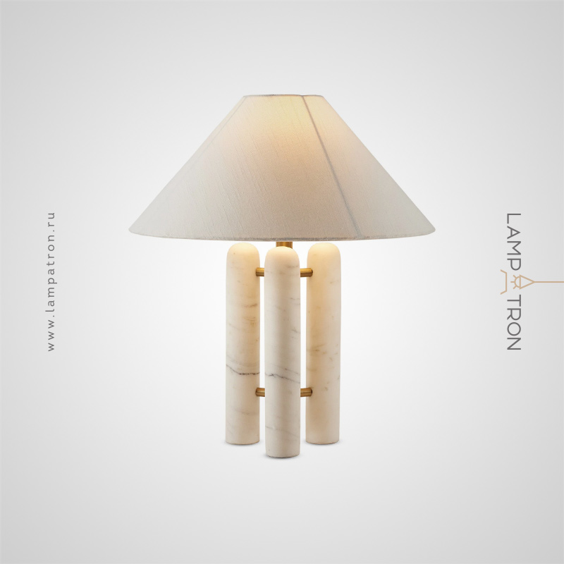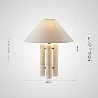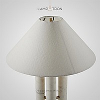 Настольная лампа с текстильным конусовидным абажуром на трех мраморных стойках