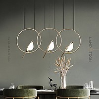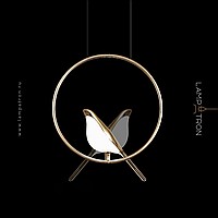 Подвесной светильник с кольцевым каркасом и источником света в форме птицы