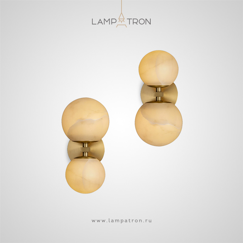 Настенный ассиметричный светильник с мраморными шарообразными плафонами разного диаметра