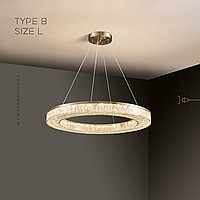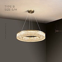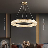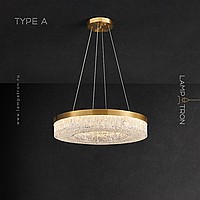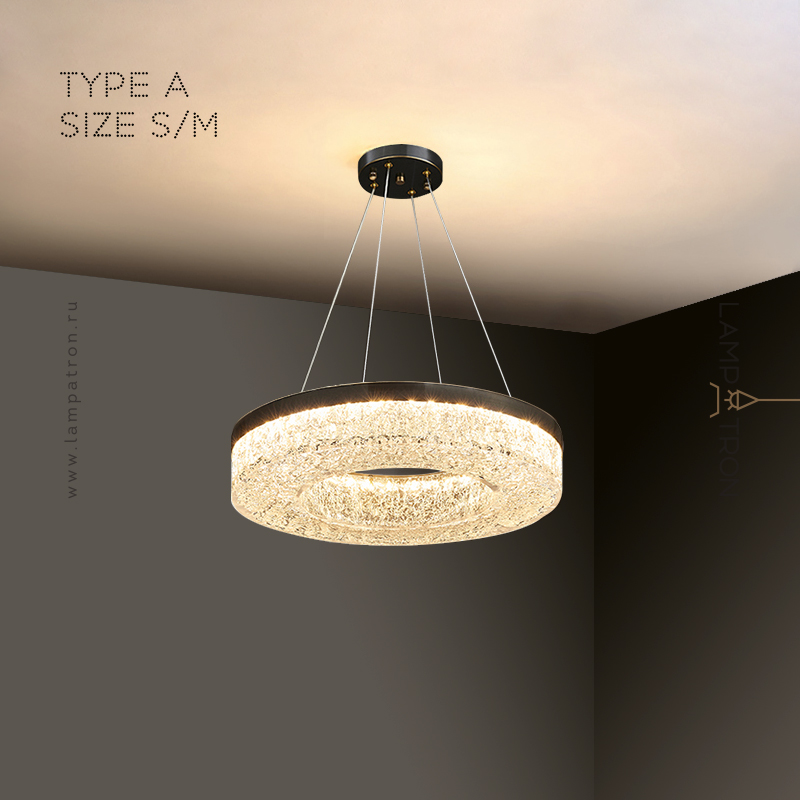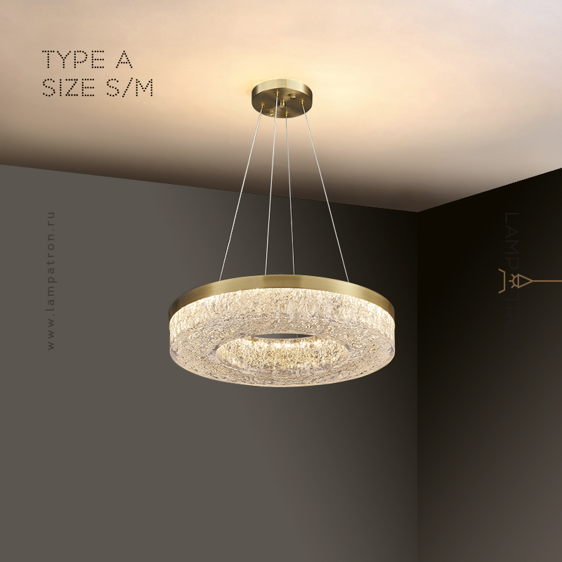 Серия светодиодных люстр с полупрозрачным рассеивателем с эффектом льда на кольцевом корпусе из латуни