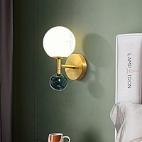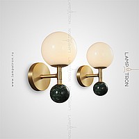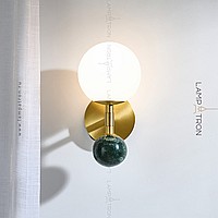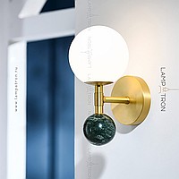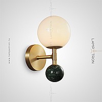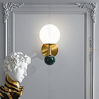 Бра с матовым шарообразным плафоном на вертикальном рожке с декоративным мраморным шаром