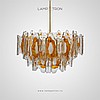Серия люстр с многоярусным абажуром из подвесок в виде листьев из стекла, металла и керамики