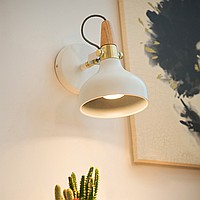 Настенный светильник белого или голубого оттенка с клипами из дерева и латунным финишем. Использование в оформлении текстурного дерева дополняет светильник природными мотивами и чистым эко-стилем. Настоящая скандинавская сказка у вас дома!