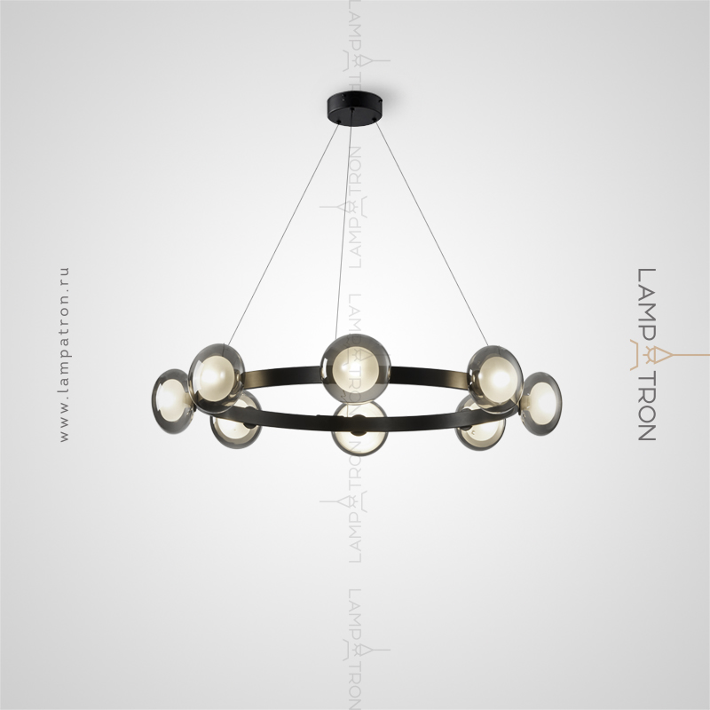 Серия кольцевых светодиодных люстр с шаровидными плафонами из белого и дымчатого стекла