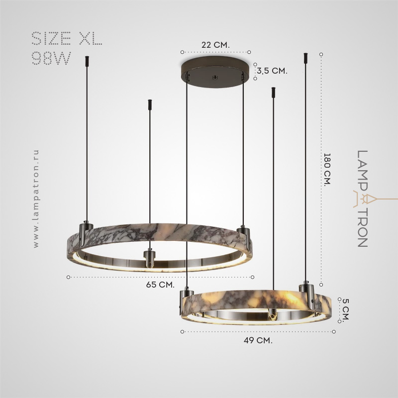 Серия кольцевых люстр с двумя LED источниками света и мраморным рассеивателем