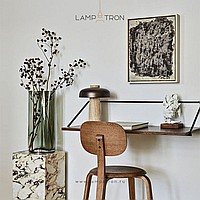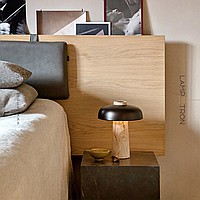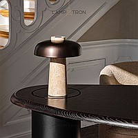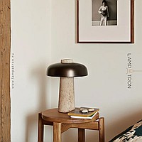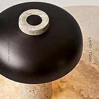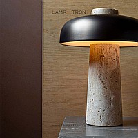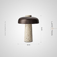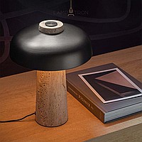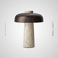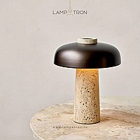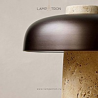 Настольная лампа с купольным металлическим абажуром и корпусом из натурального травертина