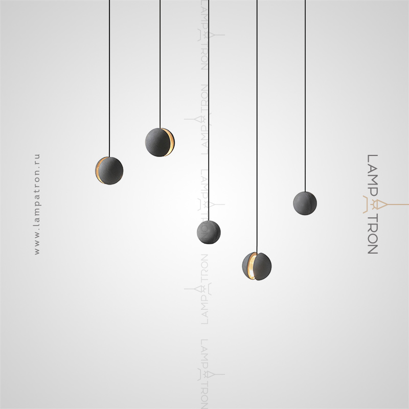 Готовая комбинация подвесных светильников с шарообразными и составными плафонами из двух полусфер из цемента