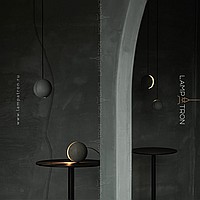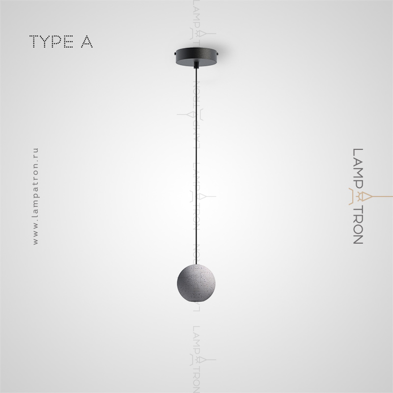 Серия подвесных светильников с шарообразным и составным плафоном из двух полусфер из цемента