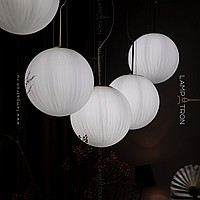Серия подвесных светильников с рельефными плафонами шарообразной формы на изогнутых стойках