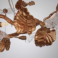 Серия кольцевых люстр с металлическими и стеклянными листьями на ветвистом каркасе