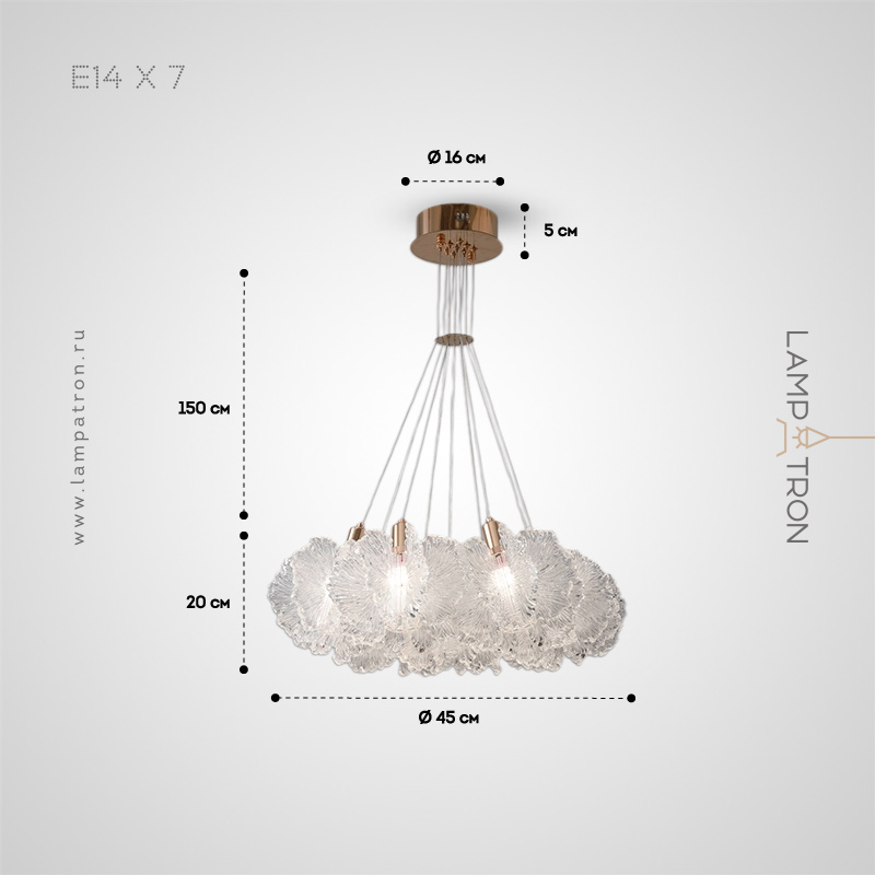 Люстра PETALS CH 7 ламп. Цвет прозрачный.