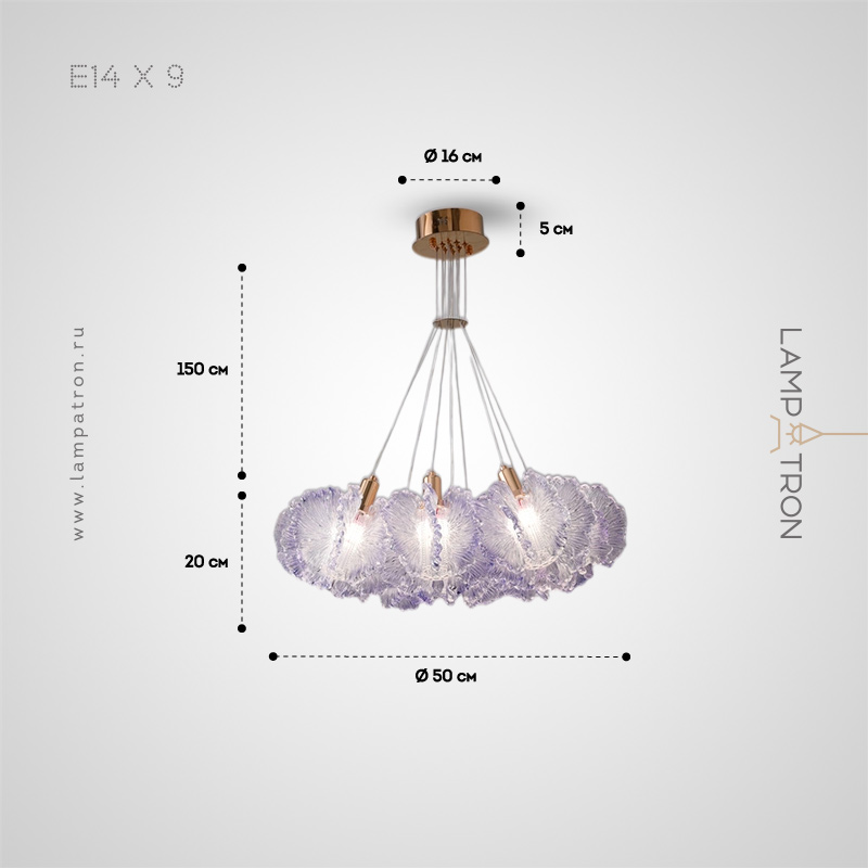 Люстра PETALS CH 9 ламп. Цвет фиолетовый.