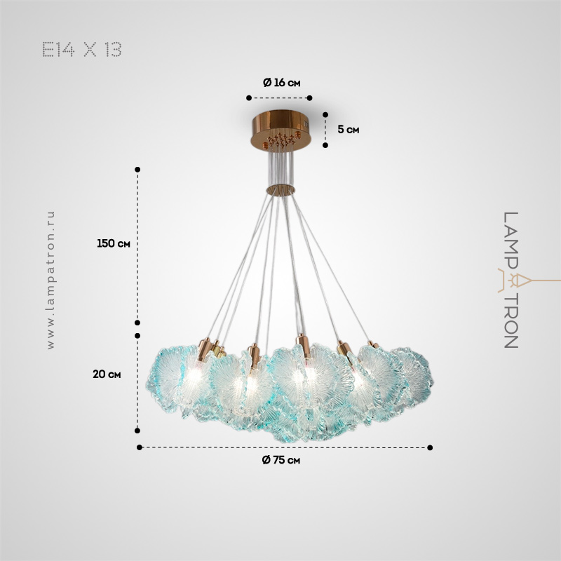 Люстра PETALS CH 13 ламп. Цвет синий.