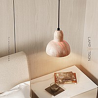 Серия подвесных светильников с купольным и конусообразным абажуром из желтого камня травертина