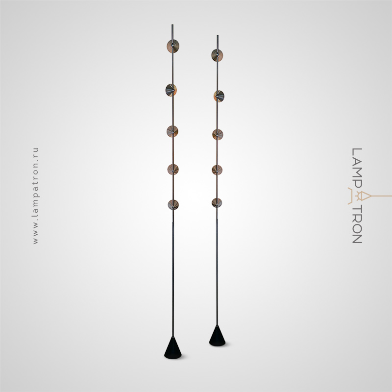 Торшер с поворотными конусовидными плафонами и попеременным включением оптических линз