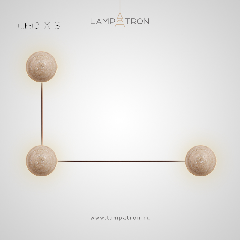 Серия настенных светодиодных светильников с соединительными проводами между шаровидными рассеивателями из камня