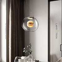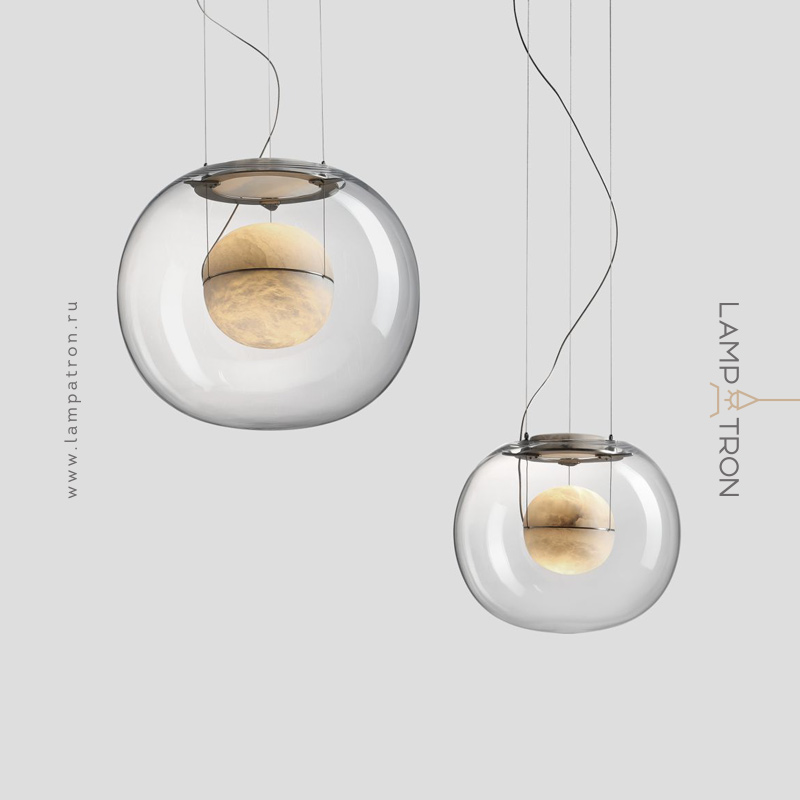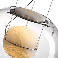 Светильник на струнном подвесе с комбинированным корпусом из мраморного рассеевателя внутри стеклянной сферы