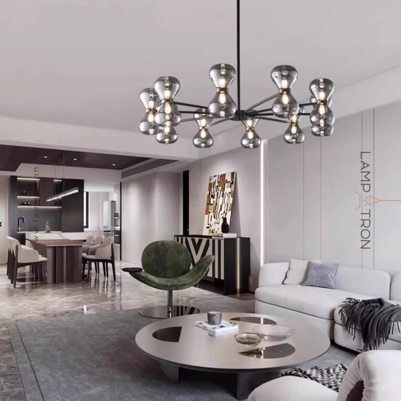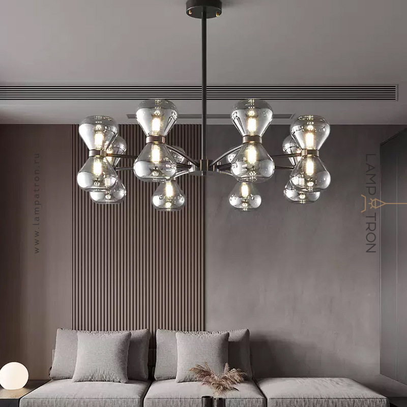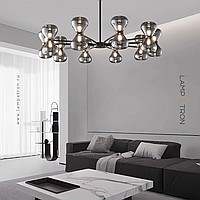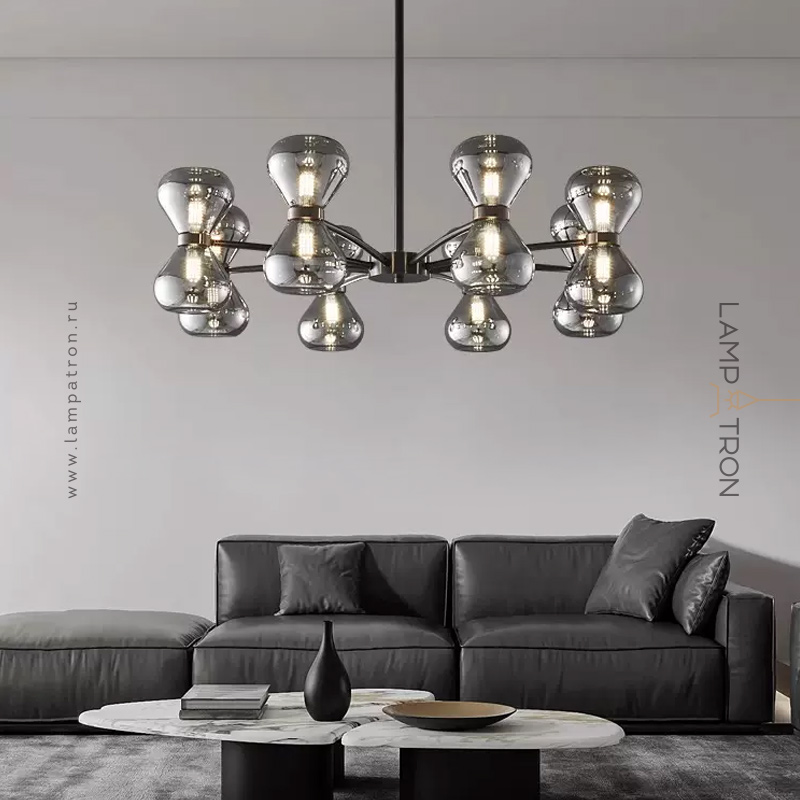 Серия светодиодных люстр с парными двунаправленными плафонами из дымчатого стекла на лучевом каркасе