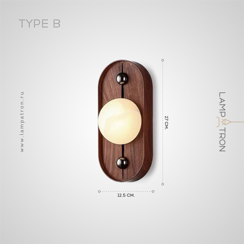 Серия настенных светильников с мраморным плафоном в форме усеченной сферы на круглом или овальном деревянном основании