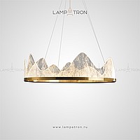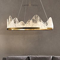Серия кольцевых люстр на струнном подвесе с рельефным абажуром неправильной формы