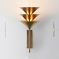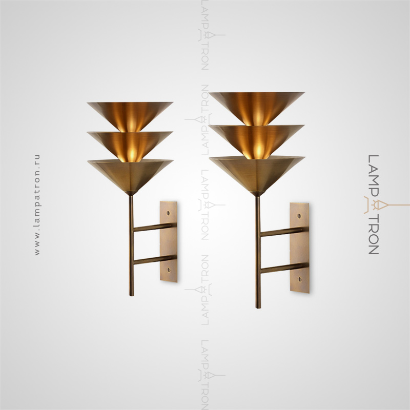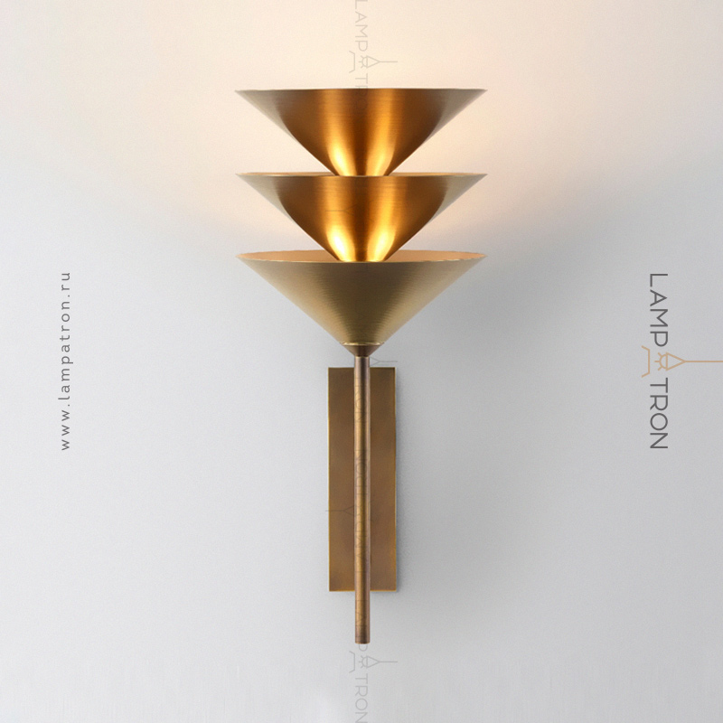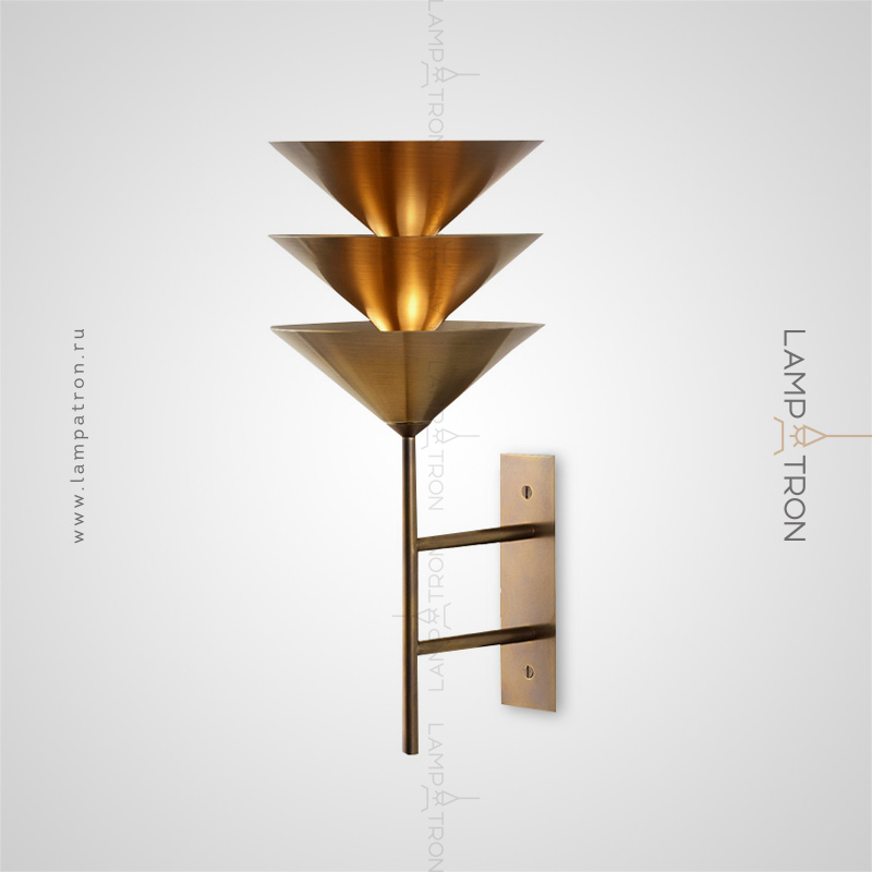 Настенный светильник с металлическим плафоном в виде композиции из трех конусов на латунном кронштейне
