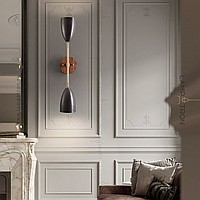 Серия настенных светильников с поворотными плафонами конической формы на деревянном креплении