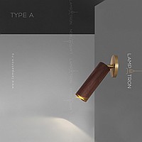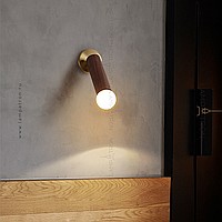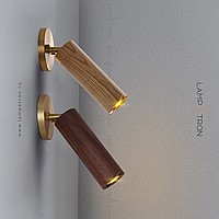 Серия настенных светильников с поворотным цилиндрическим плафоном из темного и светлого дерева