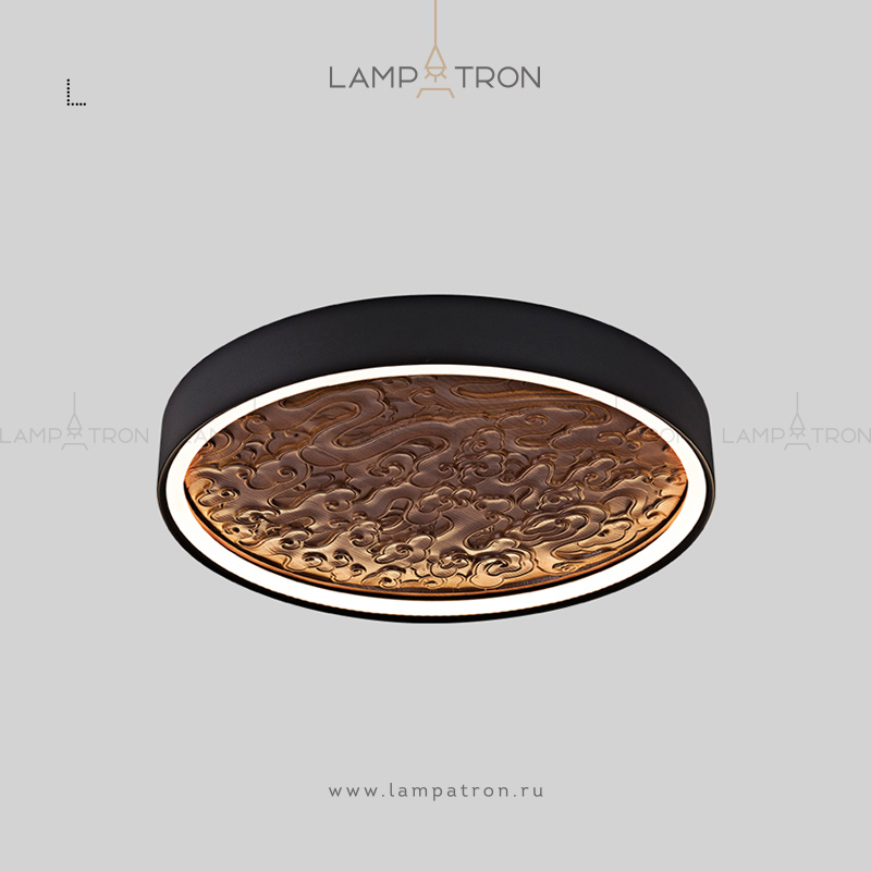 Потолочный светильник в форме диска с резным плафоном из дерева и акрила