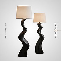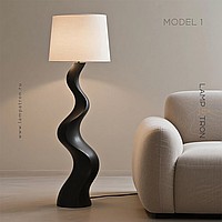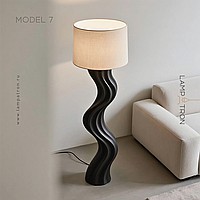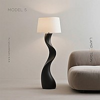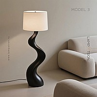 Дизайнерский торшер с волнообразным фигурным корпусом и текстильным трапециевидным абажуром