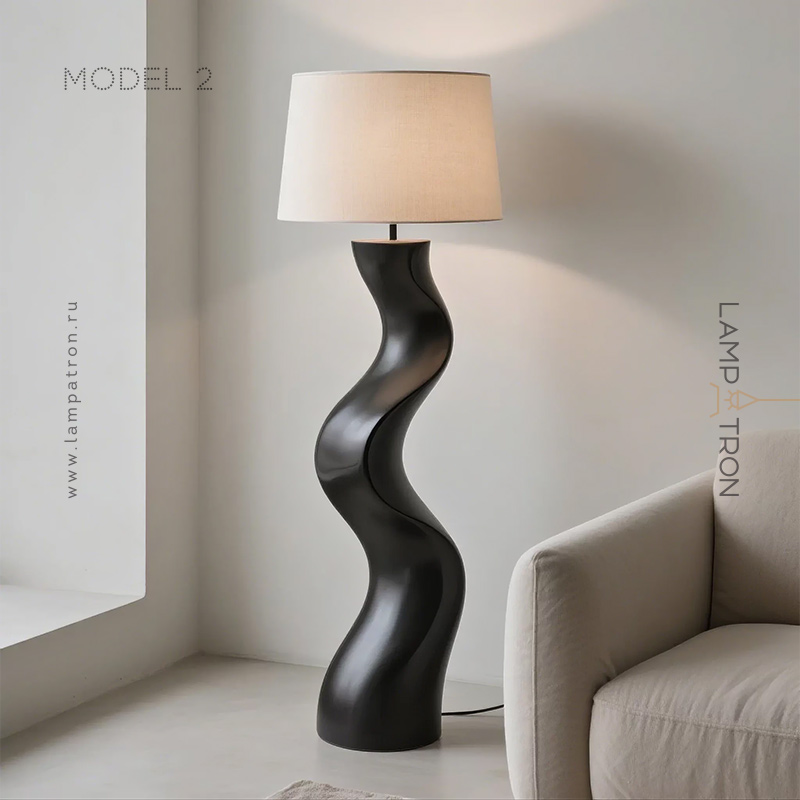 Дизайнерский торшер с волнообразным фигурным корпусом и текстильным трапециевидным абажуром