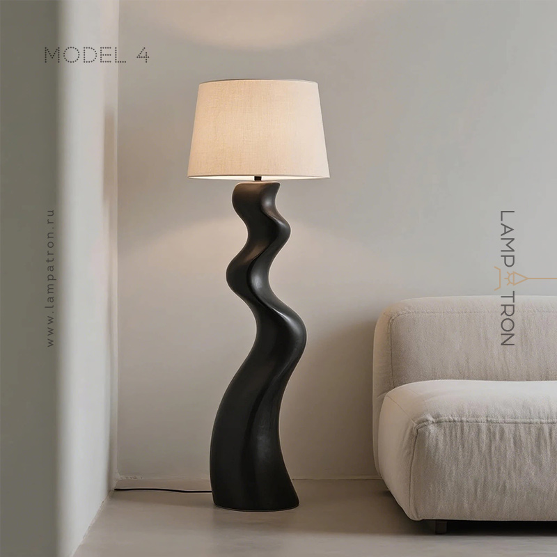 Дизайнерский торшер с волнообразным фигурным корпусом и текстильным трапециевидным абажуром