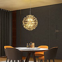 Дизайнерская люстра в форме шара из пучков с хрустальными кристаллами