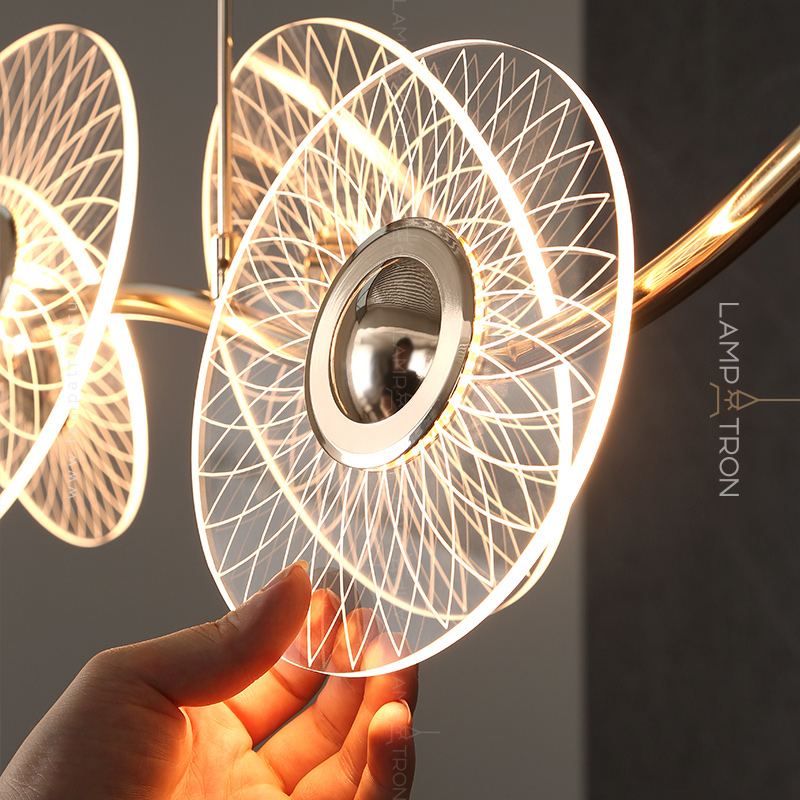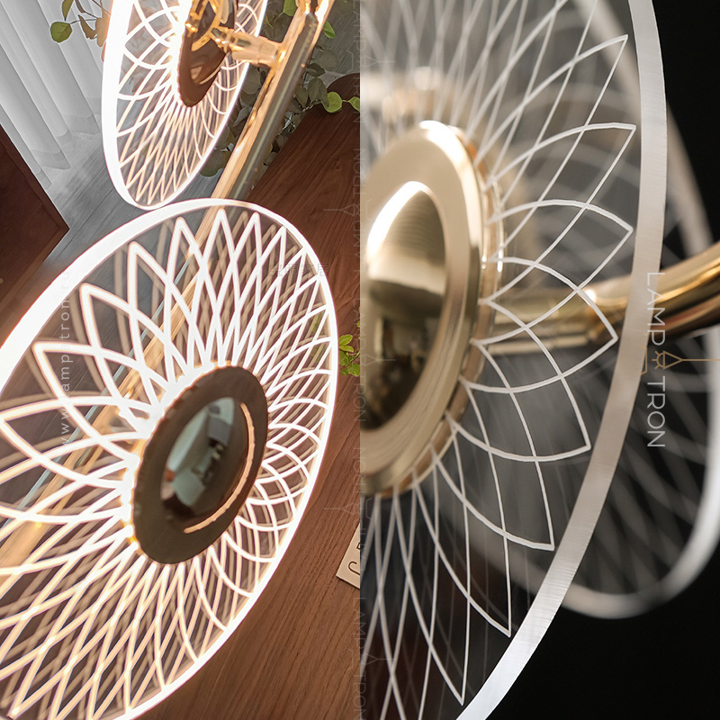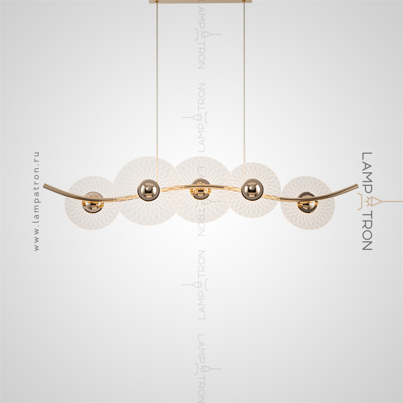 Реечный светодиодный светильник с дисковидными прозрачными рассеивателями, стилизованными под цветы с металлической сердцевиной
