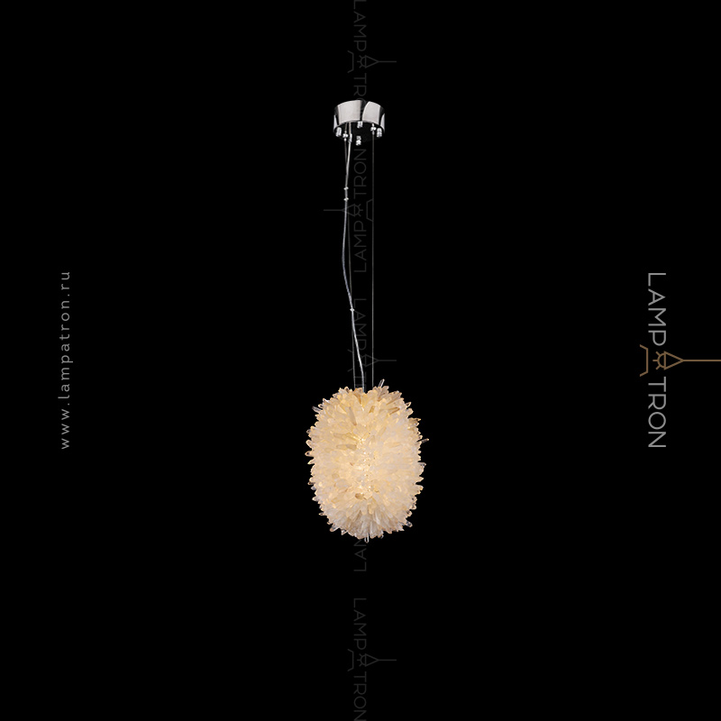 Подвесной светодиодный светильник с эллиптическим плафоном из натуральных хрустальных камней