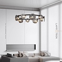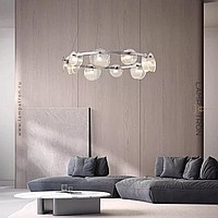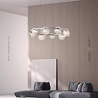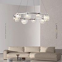 Серия светодиодных люстр с дисковидными рассеивателями из рельефного стекла разного размера на кольцевом каркасе