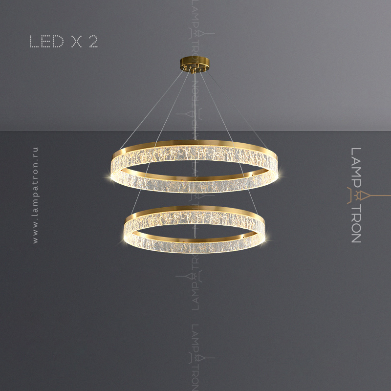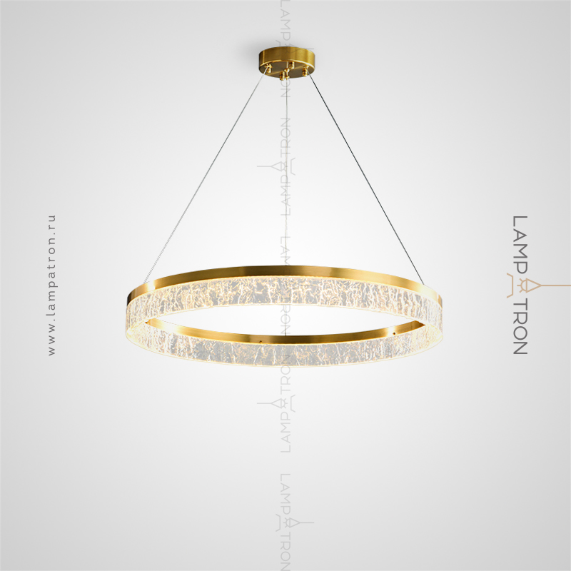 Серия дизайнерских люстр с рельефным прозрачным плафоном с эффектом льда на кольцевом каркасе с LED-подсветкой