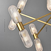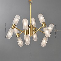 Серия люстр на 12 и 18 ламп с двойными ребристыми плафонами из стекла на одном металлическом рожке