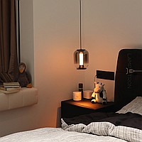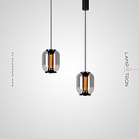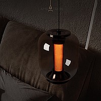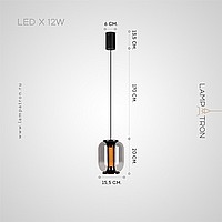 Подвесной светильник с цилиндрическим LED источником света с сетчатым рассеивателем и плафоном из дымчатого стекла