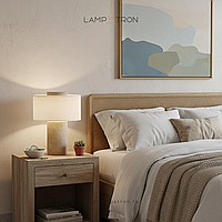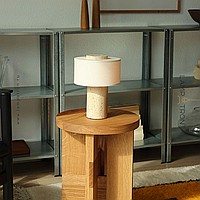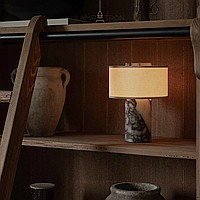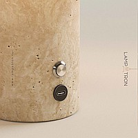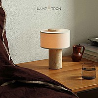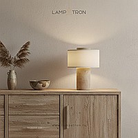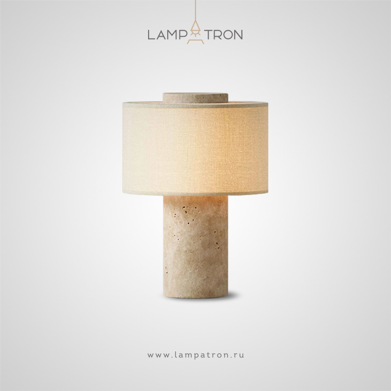 Серия настольных ламп с текстильным цилиндрическим абажуром и корпусом из натурального камня