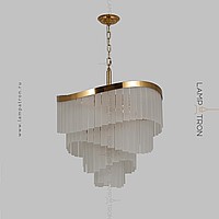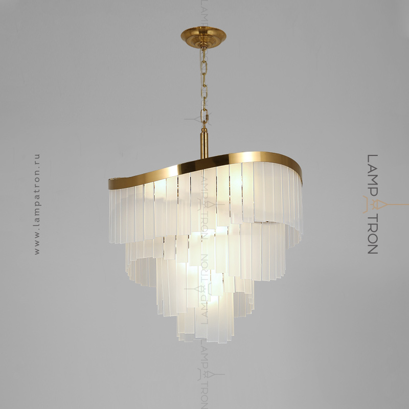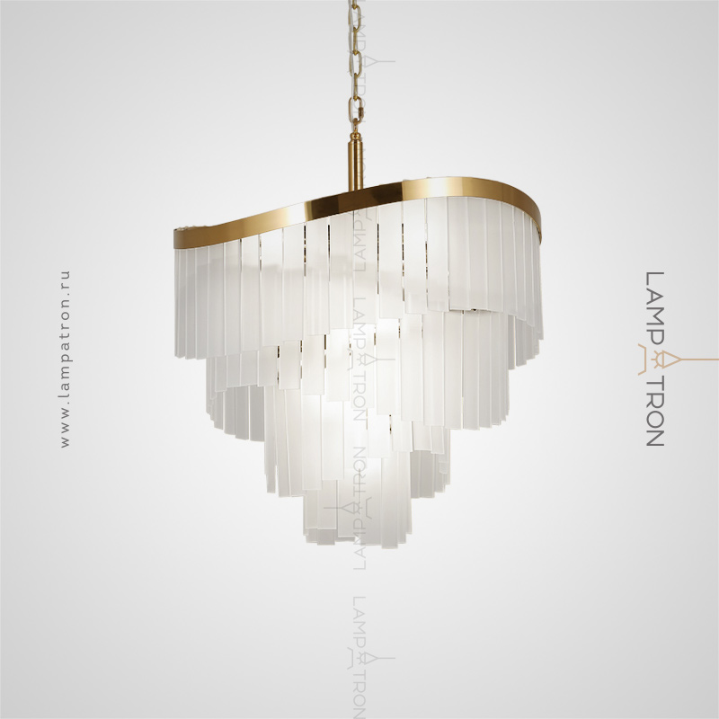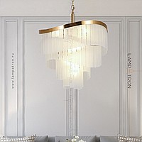 Дизайнерская люстра со спиральным абажуром из матовых стеклянных подвесок прямоугольной формы