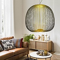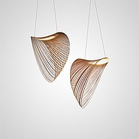 Светильник с объемным абажуром и 2 разнонаправленными светодиодами. Направленный вверх точечный светодиод подсвечивает каркас из металлических прутьев, образуя интересную игру теней на потолке и стенах. А светодиод, направленный вниз, создает акцентный функциональный световой пучок.