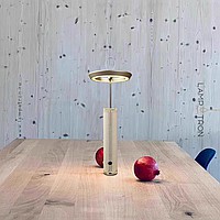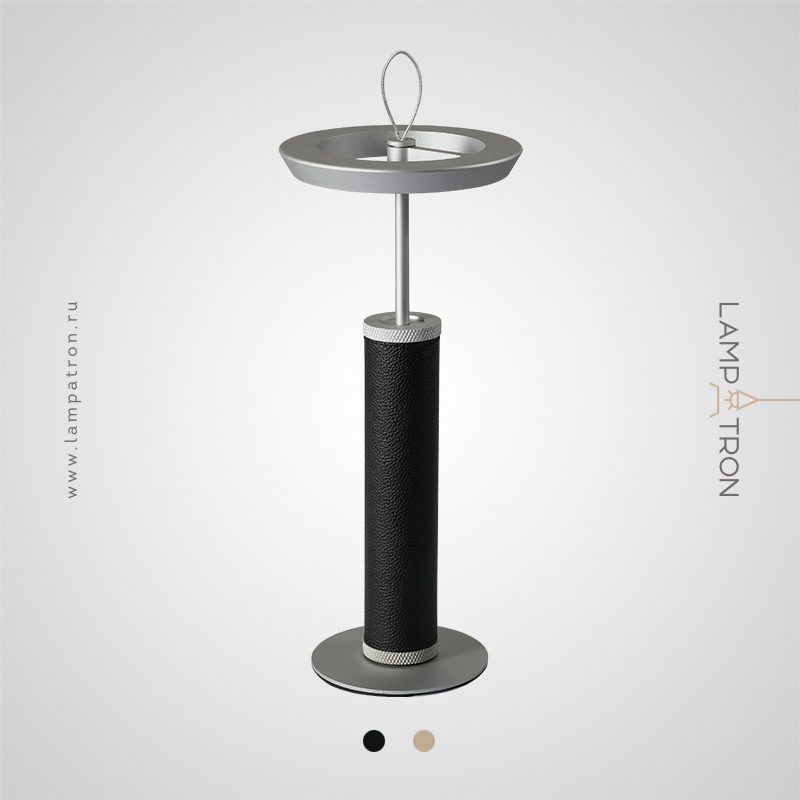 Портативная настольная лампа с фактурной кожаной отделкой и сенсорным выключателем на корпусе с USB зарядкой и возможностью подвесного размещения.