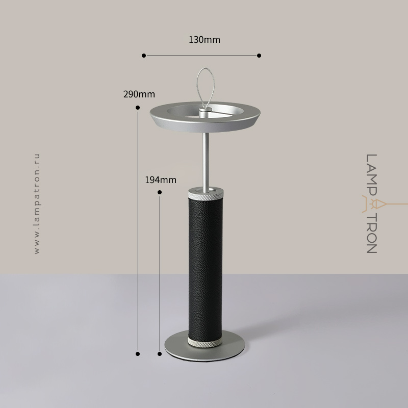 Портативная настольная лампа с фактурной кожаной отделкой и сенсорным выключателем на корпусе с USB зарядкой и возможностью подвесного размещения.