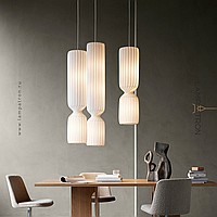 Серия подвесных светильников со скрученными рельефными абажурами цилиндрической формы