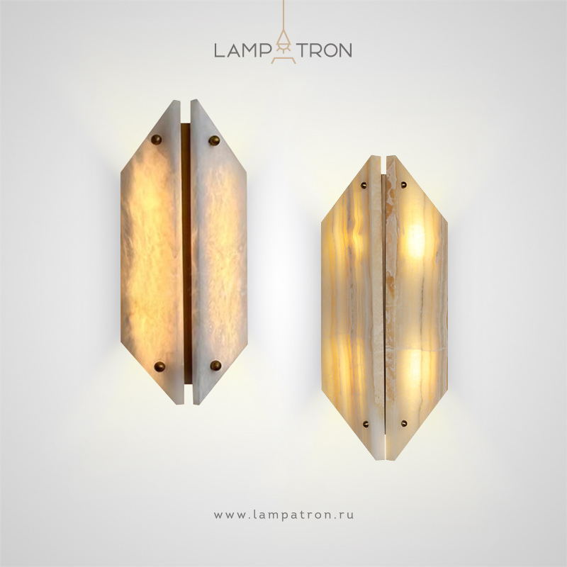 Серия настенных светильников с корпусом в виде двух трапециевидных мраморных пластин