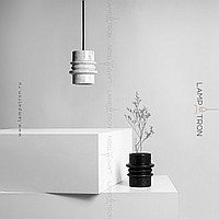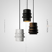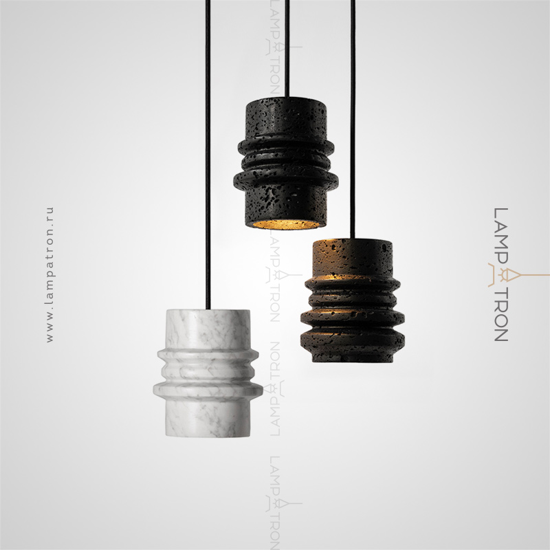 Серия подвесных светильников с рельефными плафонами цилиндрической формы из белого и черного камня