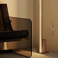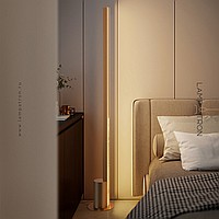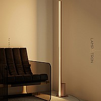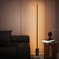 Минималистичный напольный светильник с трапециевидным рассеивателем на вертикальной стойке