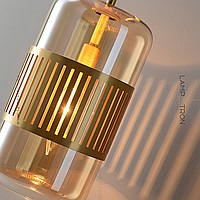 Настенный светильник с цилиндрическим плафоном из цветного стекла в металлическом обруче с вертикальными прорезями