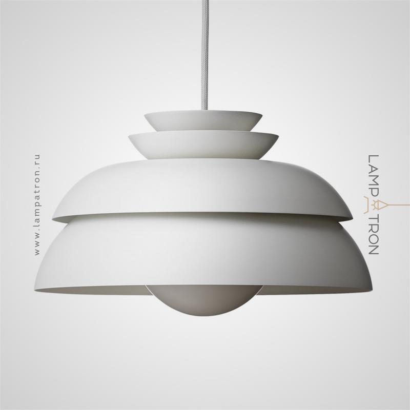 Подвесной светильник с шарообразным плафоном под белым сегментированным абажуром купольной формы
