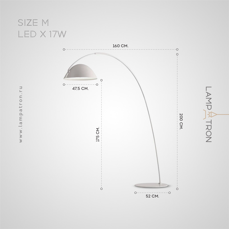 Напольный светильник на изогнутой стойке с купольным плафоном с регулировкой наклона
